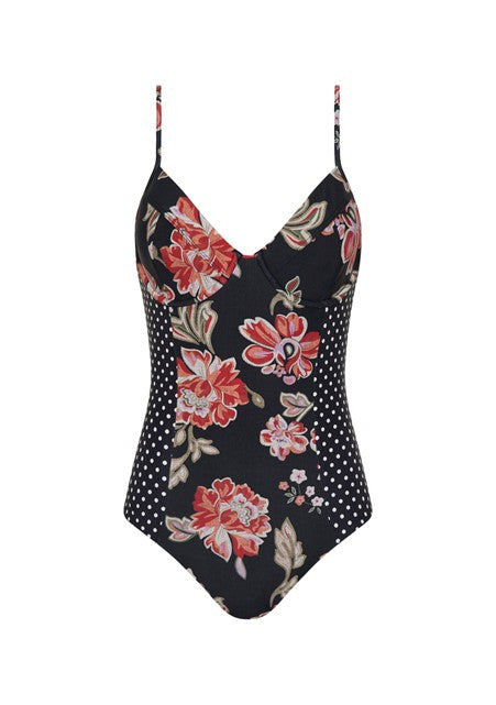 The Sculpt One Piece in our new Vesper print spliced with classic polka dots is an elegant swim style with flattering seam lines and contrast side panels. Designed with underwire bust cups for support and medium coverage, it’s crafted from sustainable recycled nylon — a chic summer essential you can feel extra good about.